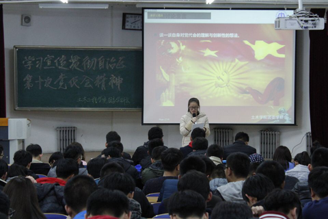 12月14日晚19:30,土木工程学院团委举办“盛世胜景谈党会 ·砼心同德普新章”主题座谈会,学习宣传贯彻自治区第十次党代会精神。学院团委书记段辉、学生会主席团常委及学生骨干150余人参加。
