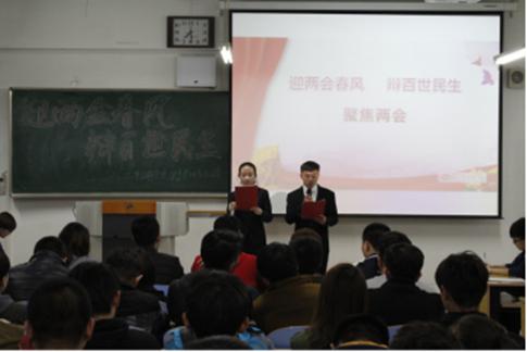 土木工程学院团委于3月9日晚在新城校区二教207开展“迎两会春风辩百世民生”-----2017年两会精神的学习分享会。学院全体学生干部、各班级代表参加学习。