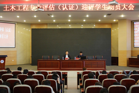 郝贠洪从工程教育认证的概况、工程教育认证的新理念、我校土木工程专业教育认证的重要意义和对在校学生的希望以及要求四个部分对学生进行动员。希望同学们认真学习认证理念,积极配合专业评估(认证)工作,确保土木工程专业评估(认证)顺利进行。