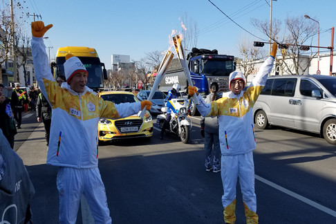 我院2017届毕业生作为特邀火炬手参加了2018年第23届平昌冬奥会圣火在韩国浦项的传递。