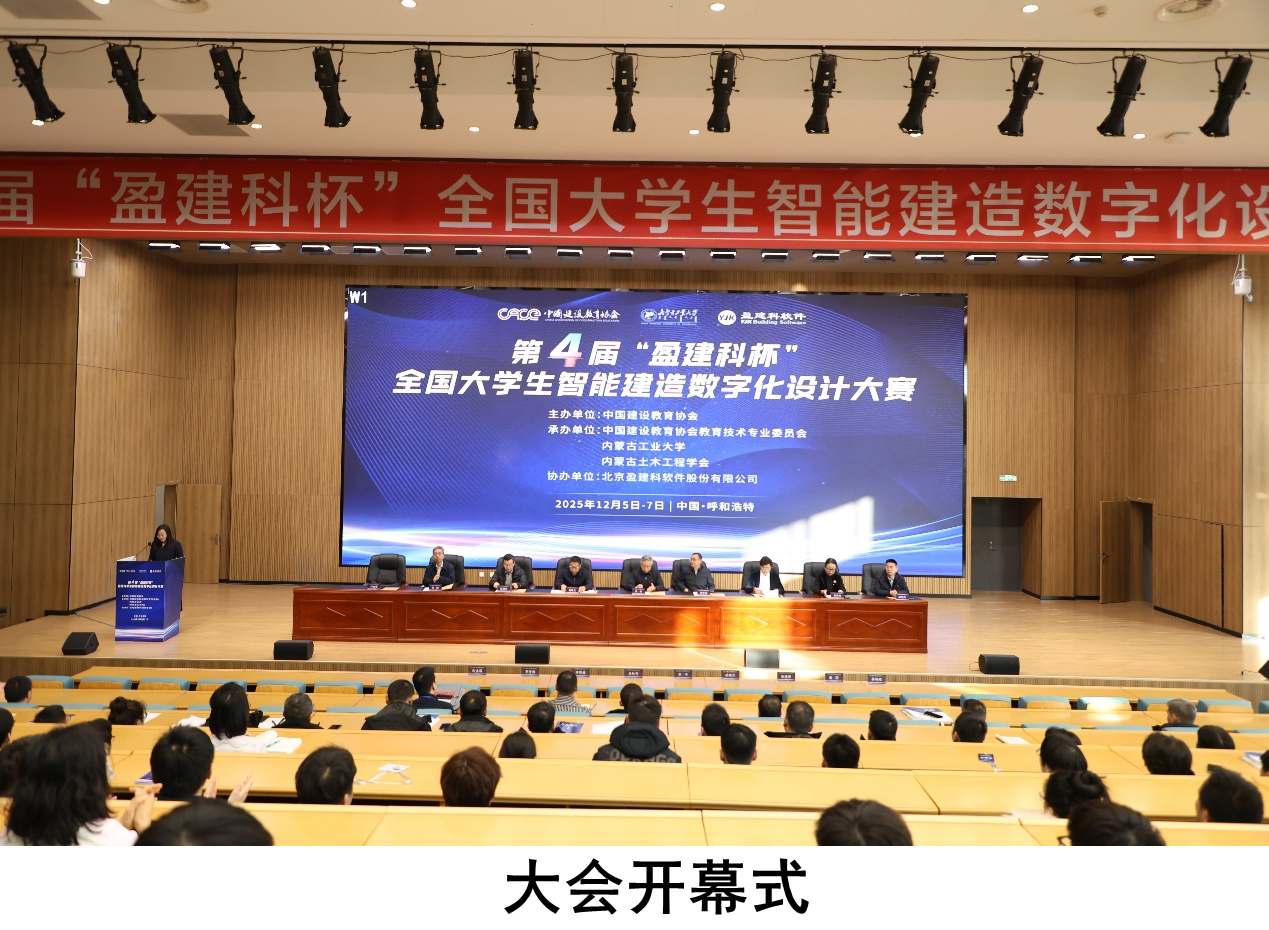12月6日上午,第四届“盈建科杯”全国大学生智能建造数字化设计大赛总决赛开幕式在内蒙古工业大学新城校区科创大厦报告厅隆重举行。本次大赛由中国建设教育协会主办,中国建设教育协会教育技术专业委员会、内蒙古工业大学、内蒙古土木工程学会承办,北京盈建科软件股份有限公司协办。开幕式采用线下主会场与线上图片直播相结合的方式,汇聚了协会、高校、企业领导、评审专家到场,线上线下六千多名师生代表观看。