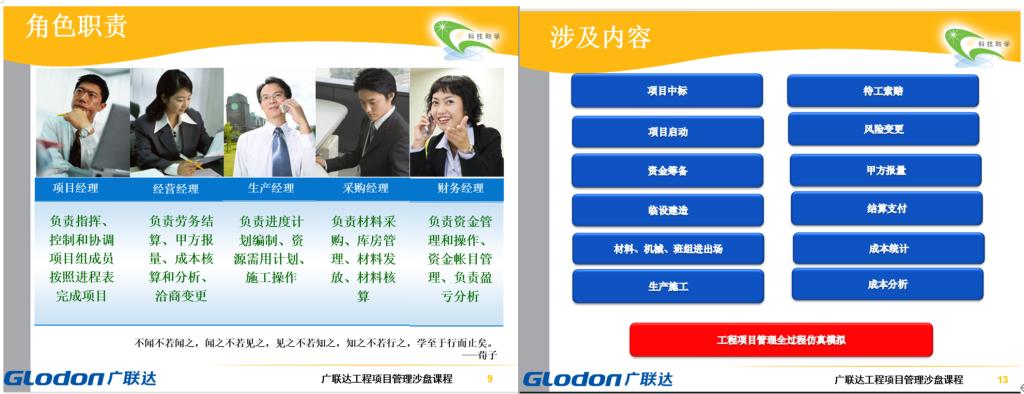 PMST课程教学旨在实现在校大学生入职前零距离感受到施工企业实际的工程项目管理运作过程,让学生通过沙盘去体验工程项目盈亏决策、进度计划编排、资金筹措、资源使用计划、风险管理、工程报量结算、经营核算等 一 系列活动。课程开展是在规定的时间内,在同 一 间 教 室 里 , 学 生 将 模 拟5个 不 同 岗 位 角 色(如 图1 . 4所 示) ,组 建 若 干 个 工 程 项 目 管 理 团 队 ,在紧张激烈的竞争氛围中,完成模拟的工程施工项目管理过程,体验施工企业对项目管理的过程,挖掘工程施工项目管理的本质;并且在专门的沙盘分析软件协助下,老师通过对学生实践 活动过程的引导和点评,强化学生对理论知识的理解与应用能力,提升学生在管理层面上的综合素质。